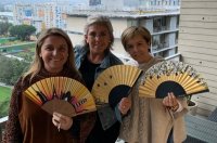 Une belle collection d´éventails en satin ou coton entièrement dessiné et peint à la main